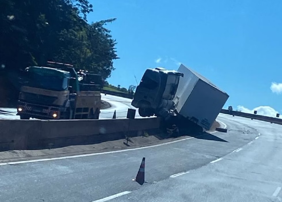 Neste sábado (28/03), 07h58, equipes da Autopista Fernão Dias foram acionadas para um atendimento de colisão em defesa metálica no km 702,1 da BR-381/MG, em Lavras/MG, sentido São Paulo (pista sul). O acidente envolveu uma carreta (foto), sem informações da vítima até o momento desta postagem. A faixa esquerda está interditada. As equipes da concessionária atuam no local para o atendimento, garantindo a segurança da via.